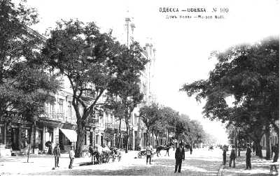 Мавританско-готический стиль дома Нолли на Ришельевской, так поразивший когда-то горожан (керамическая плитка облицовки, наборной камень в наличниках, спокойный приглушенный цвет), имеет развитие сегодня --- рядом, на углу Большой Арнаутской, в этом же стиле теперь возвели мечеть. В ажурной арке центрального входа дома Нолли, он высится в левой части улицы на этой фотографии, помещена шестиугольная звезда с расходящимися кованными лучами, а под аркой теперь выбили двери и вставили ворота от гаража, глухие, убогие, как вход в бомбоубежище. … Дом Нолли был надежно создан и его высокие шпили по-прежнему торжественно венчают улицу Ришельевскую. Раньше они были еще выше, на снимке видны шары на вертикальных столбах.