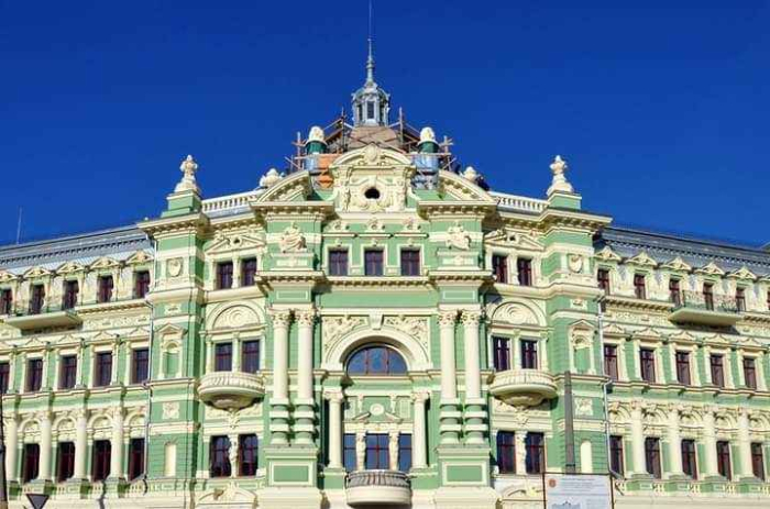 Снято полотнище после реставрации с дома Либмана. Теперь дом Руссова и дом Либмана вновь образуют великолепный городской ансамбль. Уже появились объявления, что в нем сдаются помещения.
