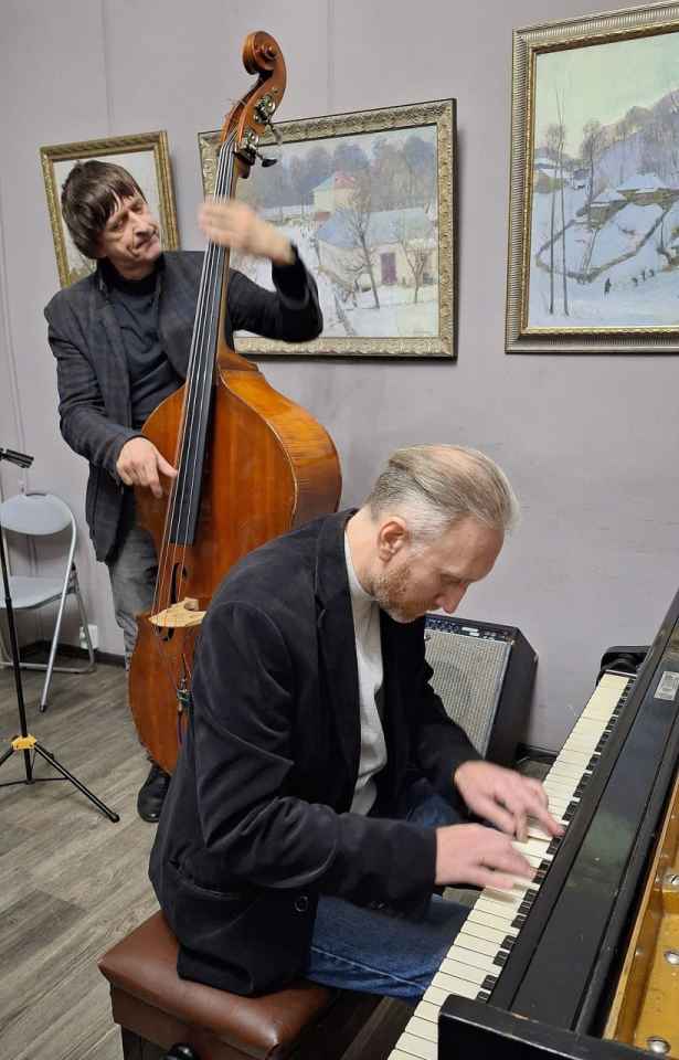 На сцені об’єдналися музиканти, чиє взаєморозуміння відчувалося з перших нот, — Олексій Петухов (фортепіано) та Віталій Фесенко (контрабас). Їхній музичний діалог був сповнений свободи імпровізації, тонкого смаку та тієї самої живої енергії, заради якої існує джаз.